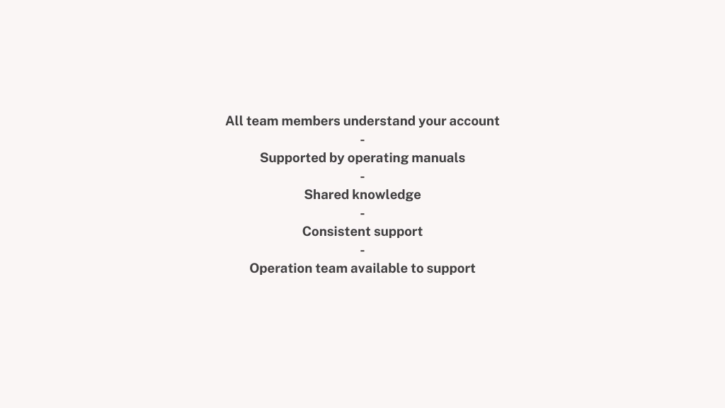 Our core teams are involved, collaborating and a committed resource no matter what stage of the journey they are with us.
